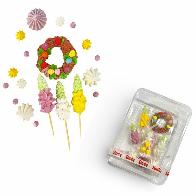 Приват24 payНабор сахарных украшений Весенний веночек 19 элементов Slado – полностью готовый съедобный декор для оформления тортов, десертов, пирожных и капкейков. Изготовлены фигурки из сахарной пасты с добавлением качественных красителей, они отличаются яркими цветами, аккуратной формой и изящными деталями.