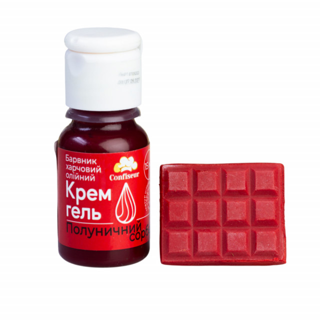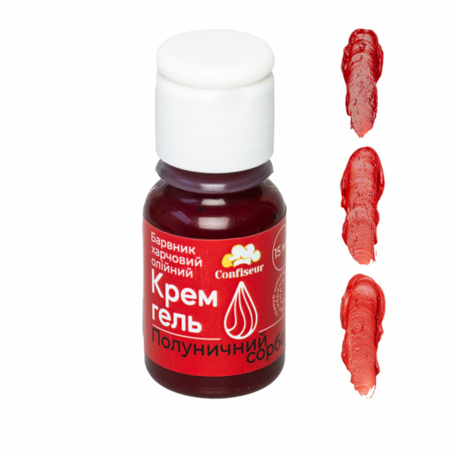 Приват24 payБарвник гелевий жиророзчинний Полуничний сорбет Confiseur – професійний барвник на олійній основі, ідеальний підходить для надання начисеного кольору шоколаду, кремам, глазурі, велюрам, ганашам та іншим жировим масам.