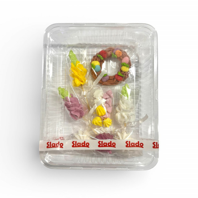 Приват24 payНабір цукрових прикрас Весняний віночок 19 елементів Slado – повністю готовий їстівний декор для оформлення тортів, десертів, тістечок і капкейків. Виготовлені фігурки з цукрової пасти з додаванням якісних барвників, вони відзначаються яскравими кольорами, акуратною формою та витонченими деталями.