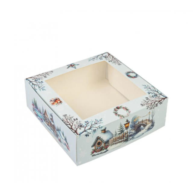 Приват24 payКоробка для десертов с окошком голубая Зимние пейзажи – изготовлена из качественного мелованного картона голубых оттенков с зимним принтом.