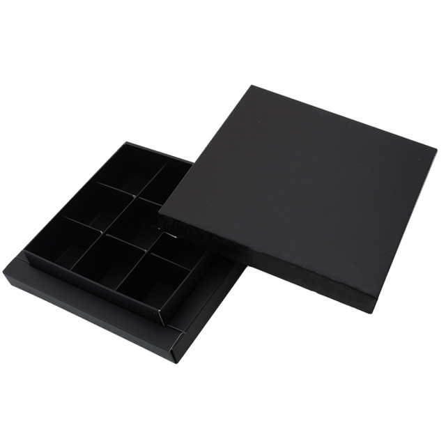 Конструкция коробки "крышка без окна - дно" обеспечивает надежную транспортировку сладких изделий, а ложемент предоставляет возможность разделить коробку от 3 до 9 секций.