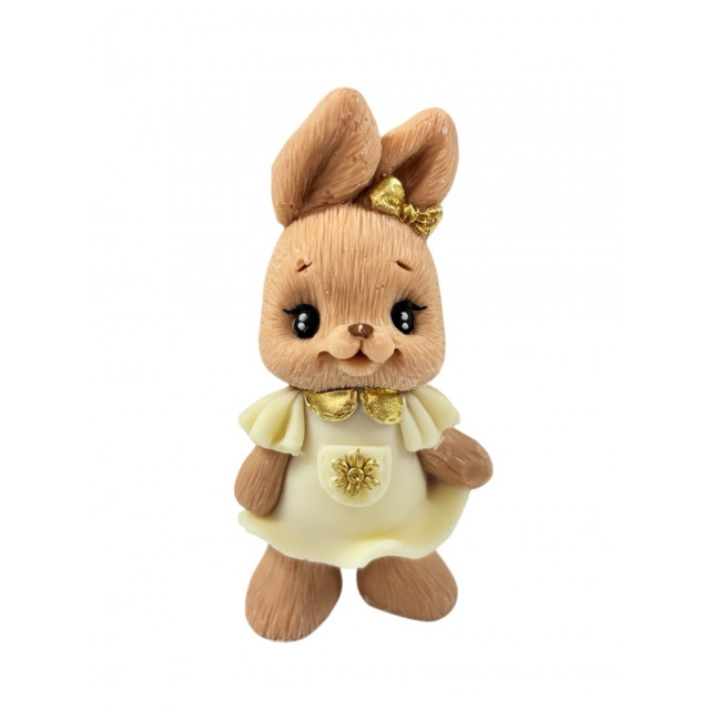 Приват24 payШоколадная фигурка Зайка Лапуля белая в бежевом – съедобное украшение в виде милой зайки, для декорирования различных десертов: тортов, пирожных, капкейков.
