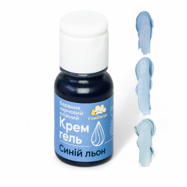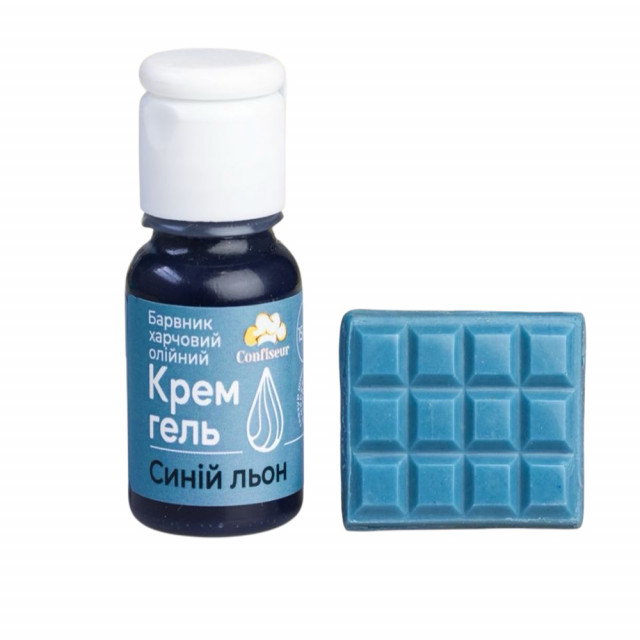Приват24 payБарвник гелевий жиророзчинний Синій льон Confiseur – професійний барвник на олійній основі, ідеальний підходить для надання начисеного кольору шоколаду, кремам, глазурі, велюрам, ганашам та іншим жировим масам.