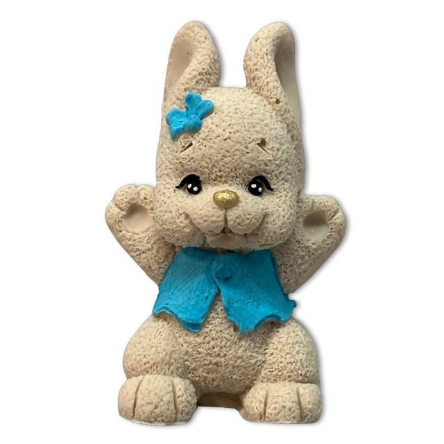Шоколадна фігурка Зайченя бежеве в блакитній кофтинці